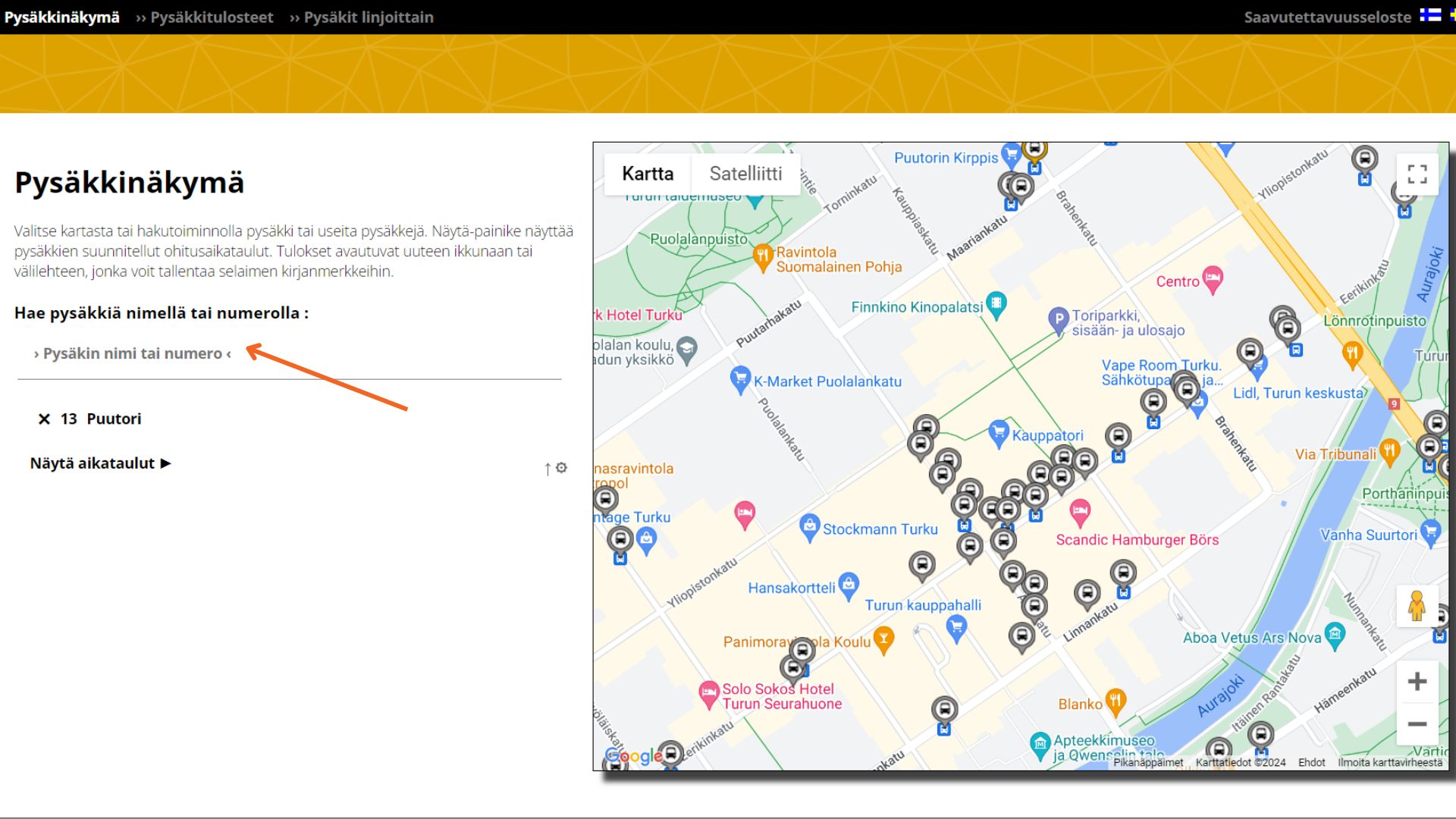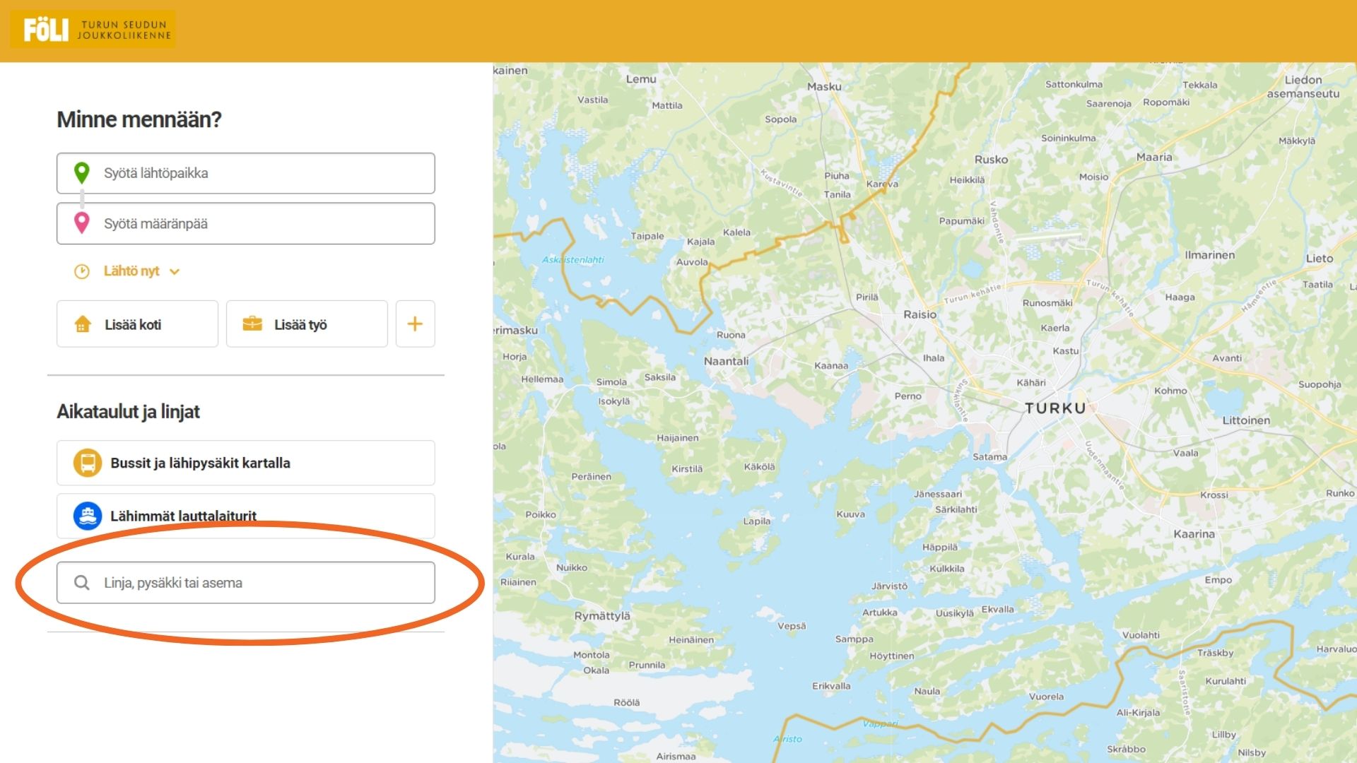 1. Open the Föli app and choose map, or visit reittiopas.foli.fi