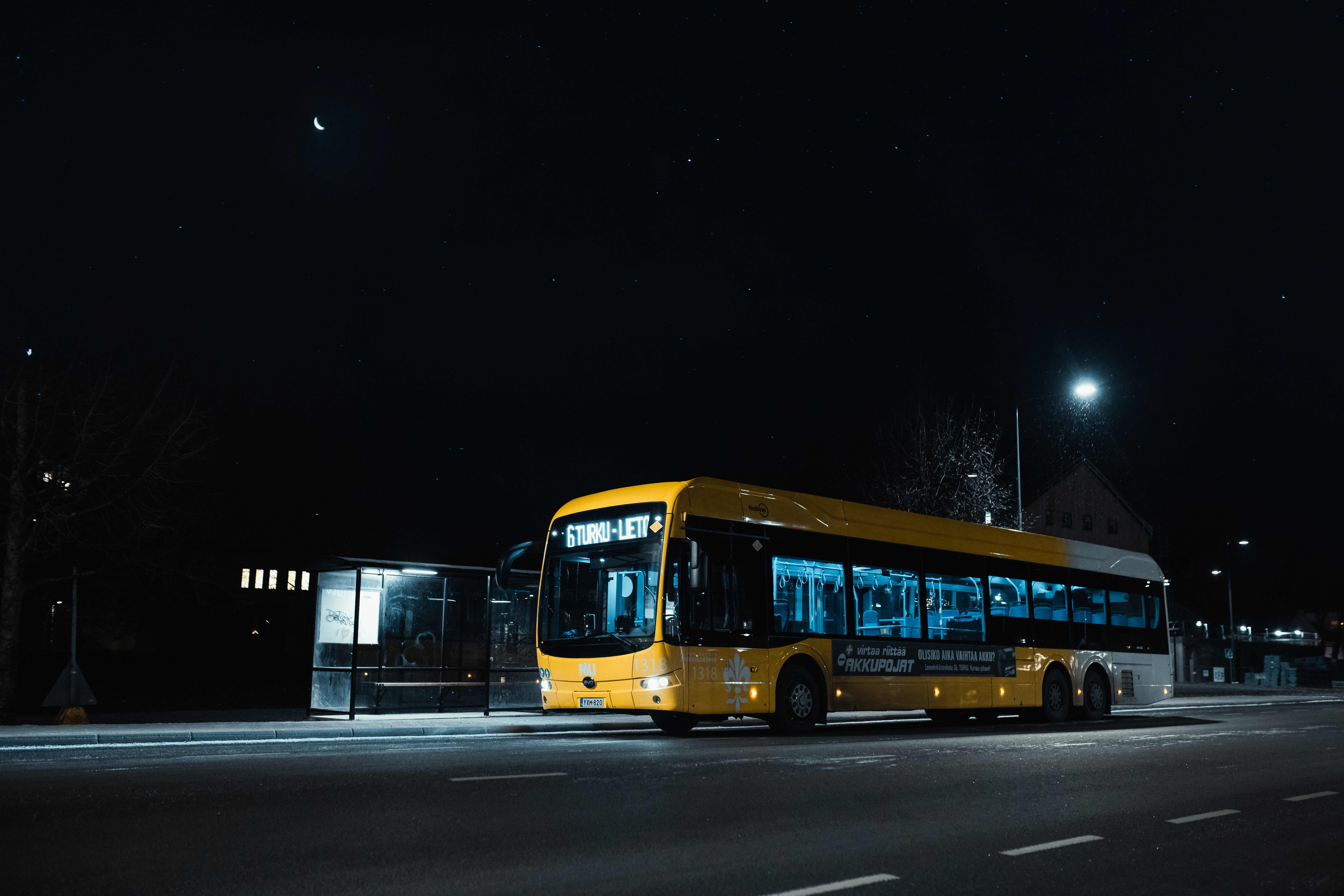 Night-time services are operated on trunk lines 1,2Y,3,4,5,6,6T,8 and 9 on Friday & Saturday nights and Saturday & Sunday nights from 01:00 to around 04:00. The timetables for the trunk lines can be found at the top of this page. In addition, there is a regular night service on line 82 and on line 89 at times to be specified in the autumn and February. The timetables for the lines 82 and 89 can be found above from the Inner lines in Turku section.