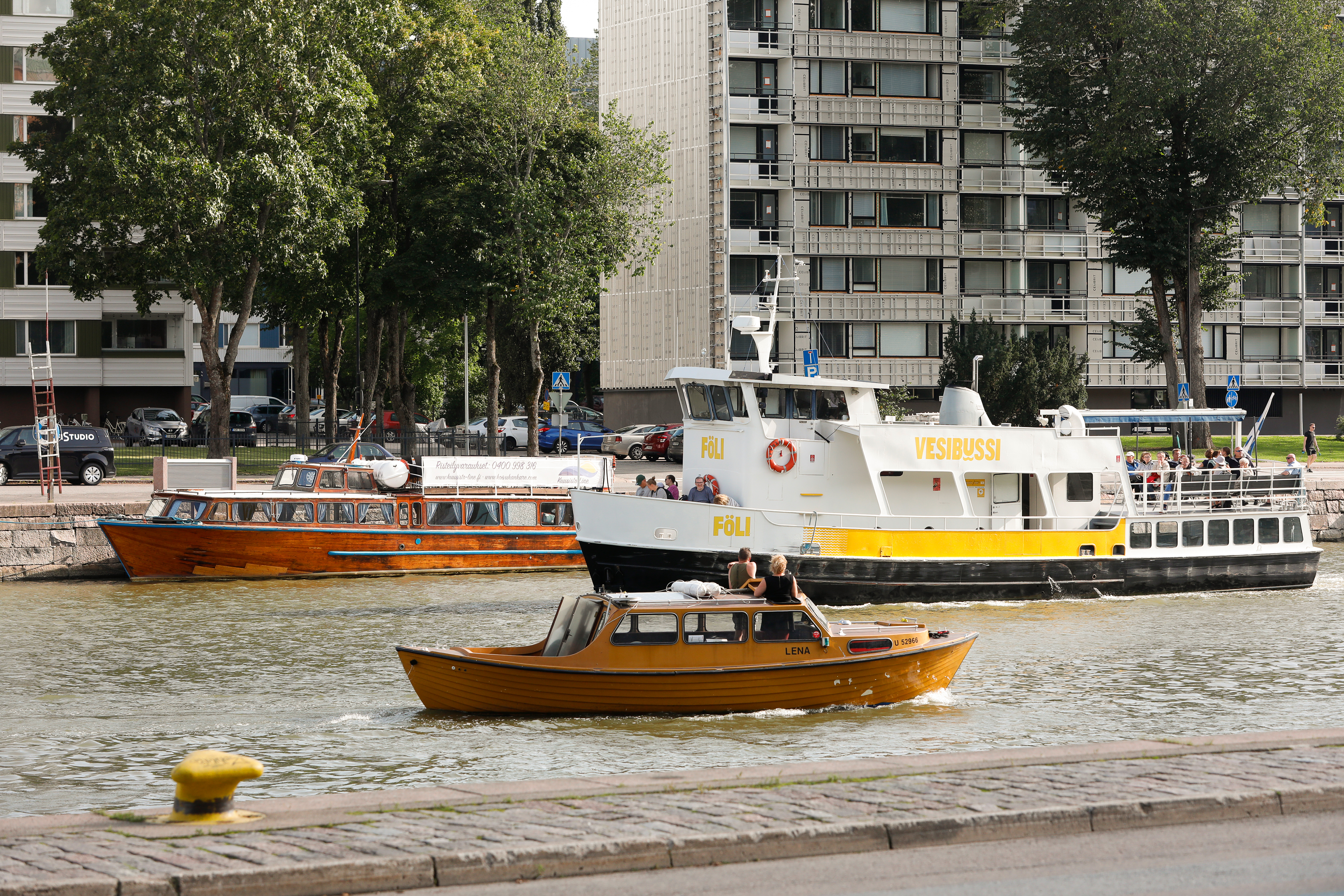In summer, water buses run from Aura River to Ruissalo and Hirvensalo. The trips are paid for in the same way as for bus traffic: with a travel card, single ticket or mobile ticket purchased through the Föli application.
