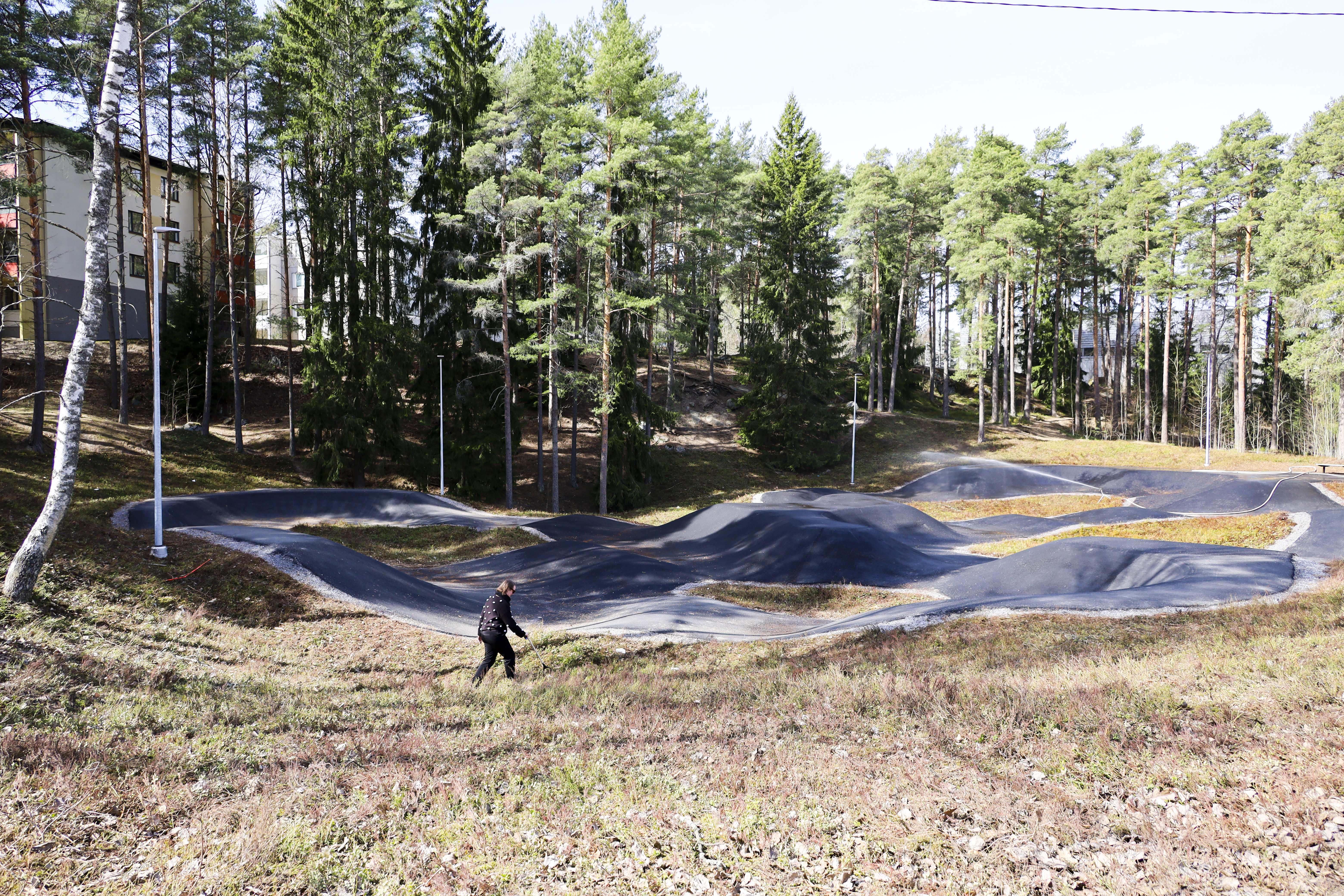 The 36-metre-wide and 48-metre-long track is suitable for cycling, skateboarding or scooting. Both the small and the big are welcome on the track.